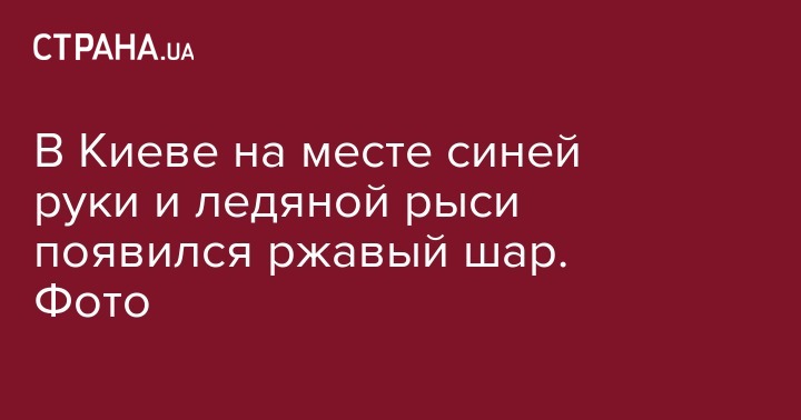 В Киеве на месте синей руки и ледяной рыси появился ржавый шар. Фото