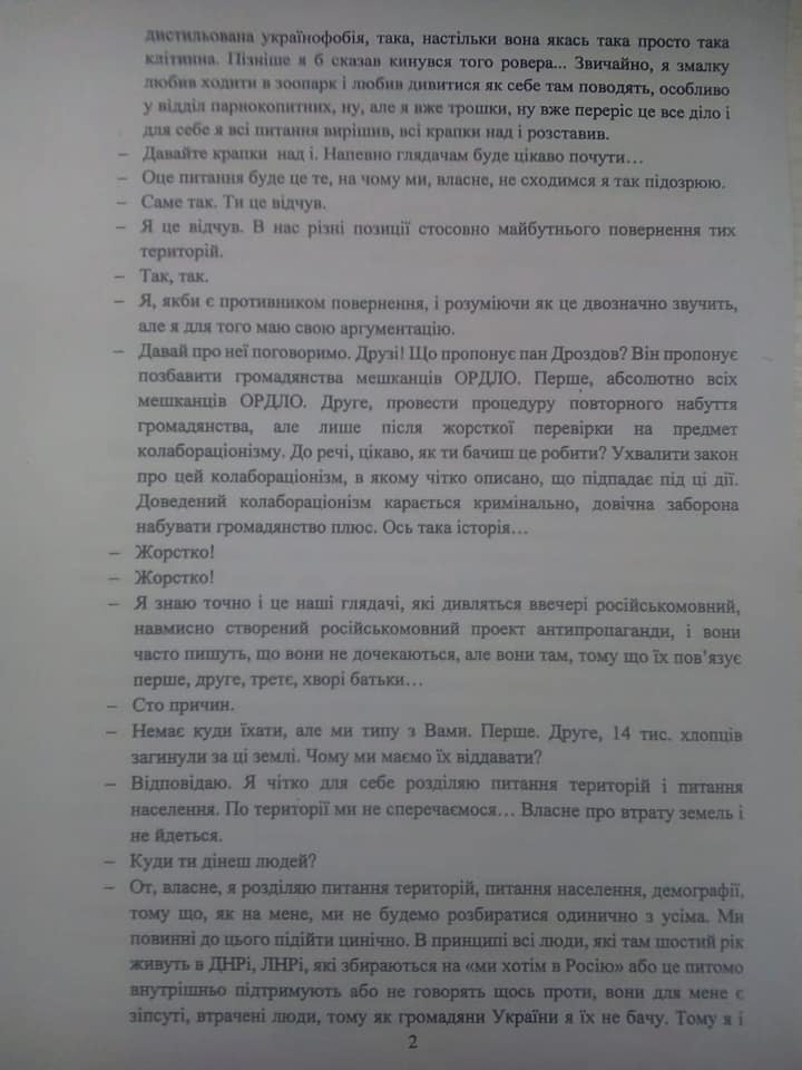 Подробные цитаты и вообще ход передачи можно посмотреть в материале "Страны" "Испорченные люди, худший регион". Как на канале Порошенко лишали гражданства жителей Донбасса.