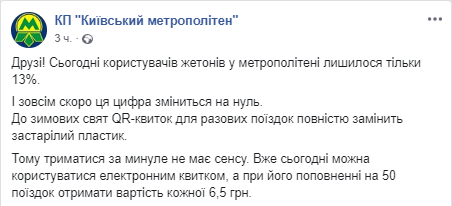 Жетонами в столичном метро пользуются только 13% пассажиров. Об этом сообщили в Киевском метрополитене в Facebook.