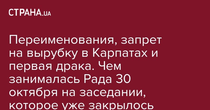 Переименования, запрет на вырубку в Карпатах и первая драка. Чем занималась Рада 30 октября на заседании, которое уже закрылось