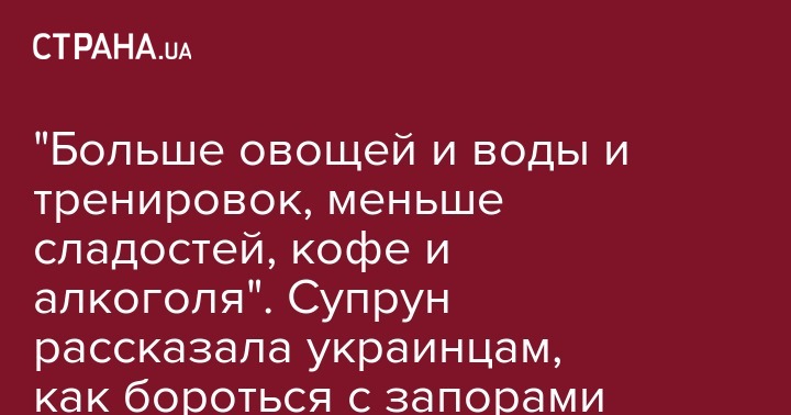 "... Помните нашу мантру: больше овощей и воды и тренировок, меньше сладостей, кофе и алкоголя. Хотя в случае кофе бывает обратное - кофе может стимулировать перистальтику сигмовидной кишки, поэтому многим людям это наоборот "помогает". Овощи и вода не дадут "послипаться" калом, а тренировки взбудоражат ленивые внутренности. Кофе в большом количестве и алкоголь в любом, приводят к обезвоживанию, поэтому сдвигают весы в сторону сиденья со смартфоном и красным лицом", - написала Супрун.