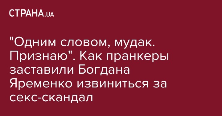 "Одним словом, мудак. Признаю". Как пранкеры заставили Богдана Яременко извиниться за секс-скандал
