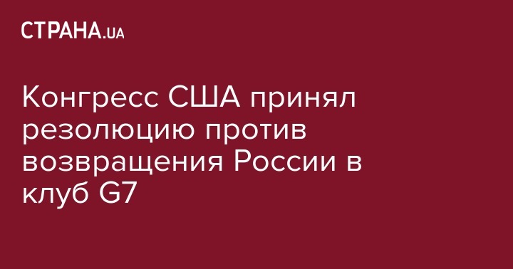 Палата представителей Конгресса США приняла итоговую резолюцию против возвращения России в клуб "Большой семерки" (G7). Об этом сообщил один из авторов документа, член Демократической партии Альбио Сайрес на своем официальном сайте.
