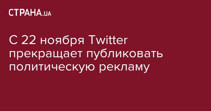 С 22 ноября Twitter прекращает публиковать политическую рекламу