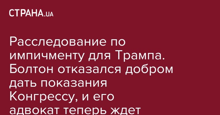 Ранее сообщалось, что демократы в американском Конгрессе хотели бы заслушать Болтона, которого считают центральной фигурой в рамках направленного на импичмент расследования, которое президент Дональд Трамп называет мистификацией. По данным издания, конгрессмены хотели бы заслушать Болтона 7 ноября.