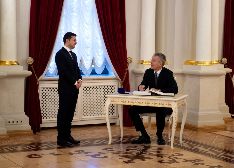 В ходе встречи в Киеве утром 31 октября президент Украины Владимир Зеленский и генеральный секретарь НАТО Йенс Столтенберг провели встречу в Киеве. Перед встречей был сделан ряд протокольных фото, которые опубликованы на сайте главы государства.