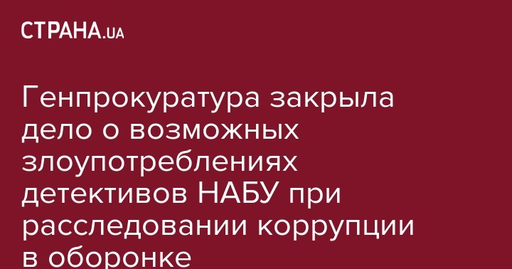 Дело о возможных злоупотреблениях детективов НАБУ в ходе расследования дел о хищениях в оборонном секторе закрыто. Об этом со ссылкой на источник в праоохранительных органах сообщают "Украинские Новости"