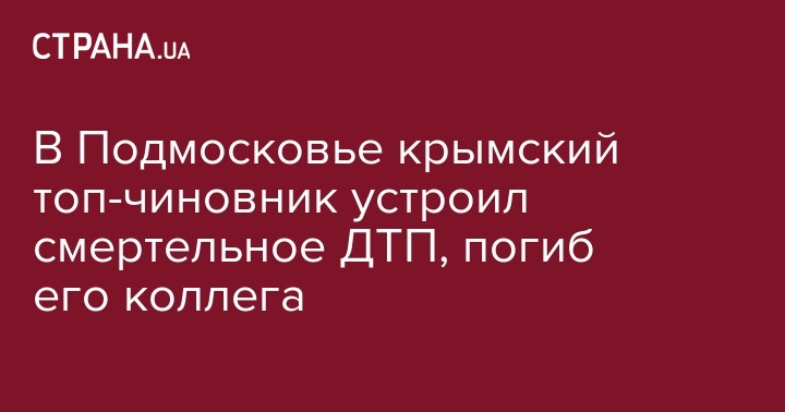 "Первый замглавы Минздрава" Крыма попал в ДТП в Подмосковье. Вместе с ним в салоне авто находились двое его коллег, один из них погиб, а второй получил травмы. Об этом сообщает ТАСС.