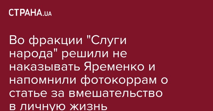 Во фракции "Слуги народа" решили не наказывать Яременко и напомнили фотокоррам о статье за вмешательство в личную жизнь