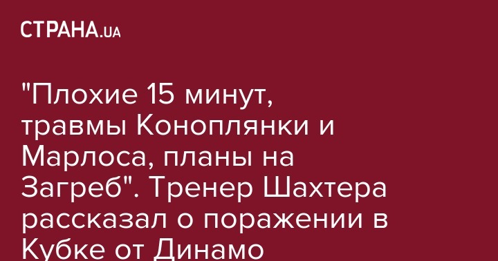"Плохие 15 минут, травмы Коноплянки и Марлоса, планы на Загреб". Тренер Шахтера рассказал о поражении в Кубке от Динамо