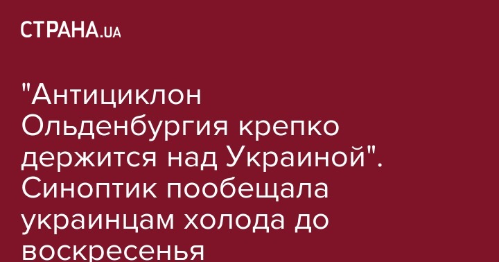 "Антициклон Ольденбургия (Oldenburgia) крепко держится над Украиной. Поэтому у нас и завтра снова - повсюду сухая погода. Однако еще побудет холод, днем ​​ожидается +3...+8 градусов, а ночью -2...-8 градусов", - написала Диденко.