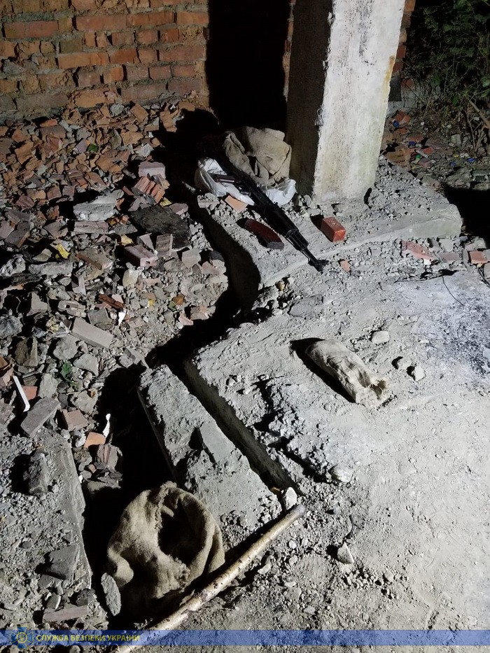 В Бориславе схрон был обустроен в нежилом здании. Из него правоохранители изъяли 400-граммовую тротиловую шашку, автомат АК-47, четыре гранаты РГД-5 и Ф-1 с запалами к ним. Оружие и боеприпасы были упакованы в мешки и спрятаны между бетонными плитами.