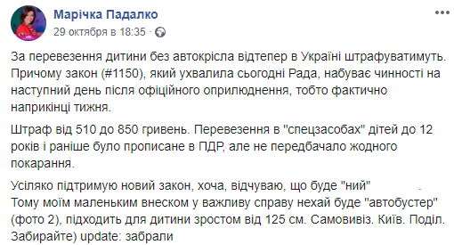 Автокресла и дикие штрафы за их отсутствие - это игрушка для богатых стран, а не для нашей помойки пятого мира!" - написал юрист Татьяна Монтян.