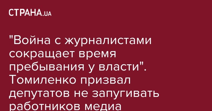 Новая коалиция (или партия монобольшинства) должна учиться у предыдущих властных элит: Война с журналистами сокращает время пребывания у власти!", - написал Томиленко.