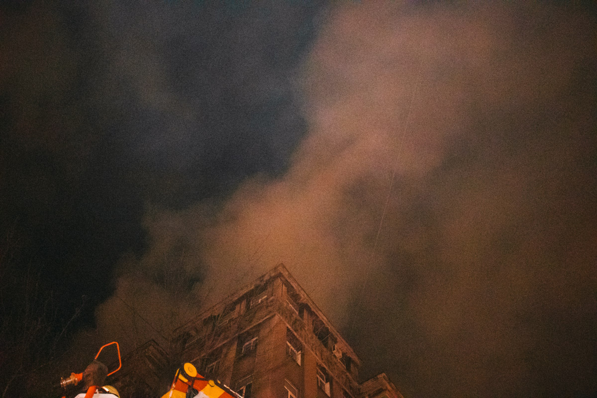 На месте происшествия работает около 22 единиц основной и спецтехники, задействовано около 80 спасателей ГСЧС. По состоянию на 22:50 пожар еще не локализовали. К дому прибыли взрывотехники.
