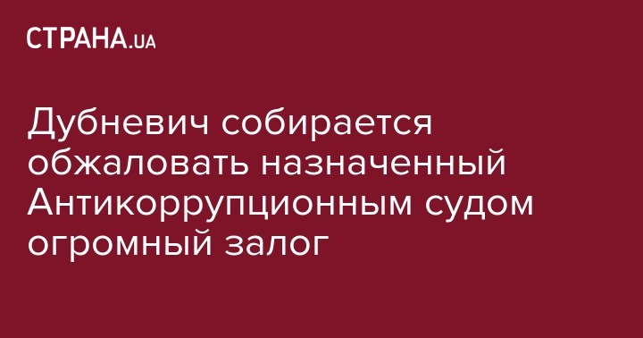 Как рассказывала "Страна", сегодня Антикоррупционный суд назначил Дубневичу гигантский залог в 100 млн грн в качестве меры пресечения. Эта сумма на 7 миллионов больше ущерба, в нанесении которого государству подозревают Дубневича.