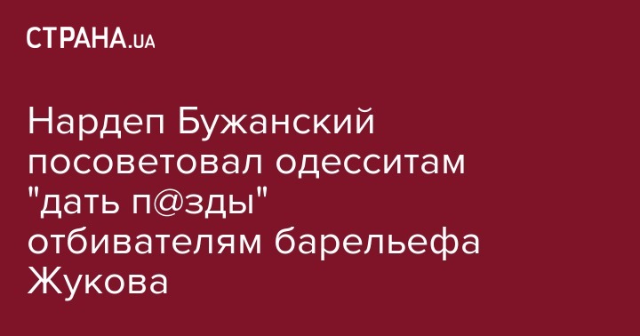 Депутат Верховной Рады от партии "Слуги народа" Максим Бужанский призвал одесситов отстаивать памятники города, которыми горожане дорожат, а тем, кто отбивал барельеф маршалу Жукову "дать пи@ды".