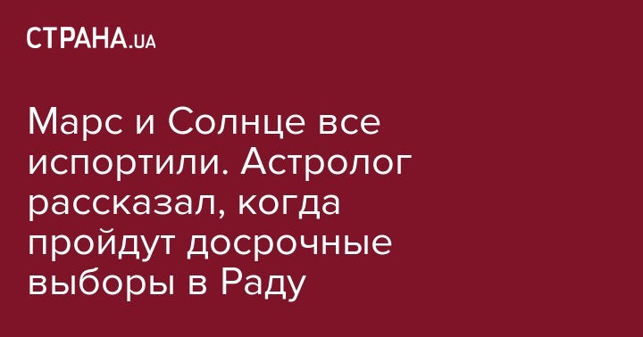 Марс и Солнце все испортили. Астролог рассказал, когда пройдут досрочные выборы в Раду
