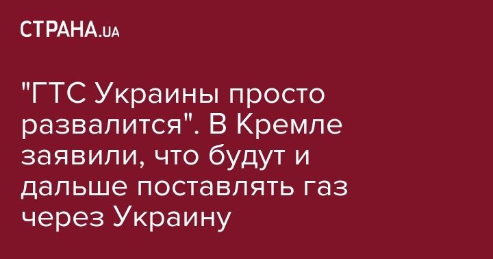 "ГТС Украины просто развалится". В Кремле заявили, что будут и дальше поставлять газ через Украину