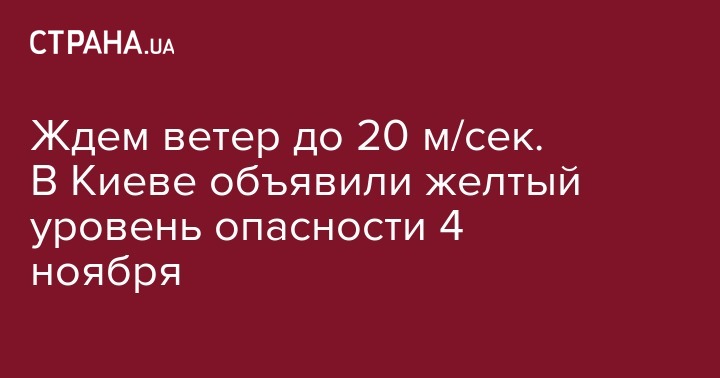 В понедельник, 4 ноября в Киеве ожидаются порывы ветра до 15-20 м/с, что соответствует первому ("желтому") уровню опасности, как передает пресс-служба КГГА.