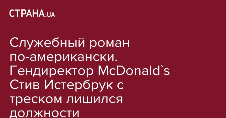 Генеральный директор американской корпорации McDonald's Стив Истербрук был вынужден подать в отставку из-за романтических отношений с сотрудницей. Совет директоров корпорации констатировал, что тем самым он нарушил политику компании. Об этом сообщает CNN.