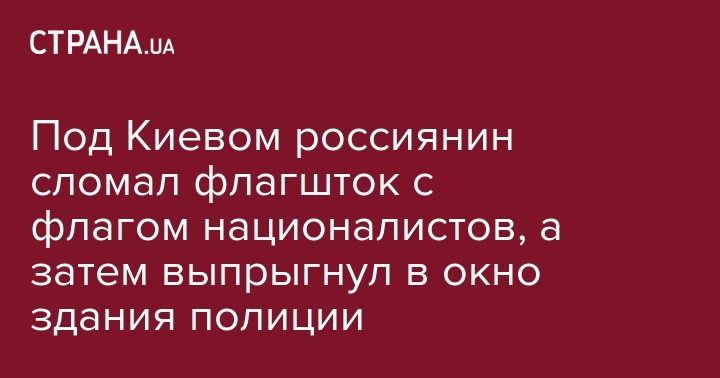 Под Киевом россиянин сломал флагшток с флагом националистов, а затем выпрыгнул в окно здания полиции