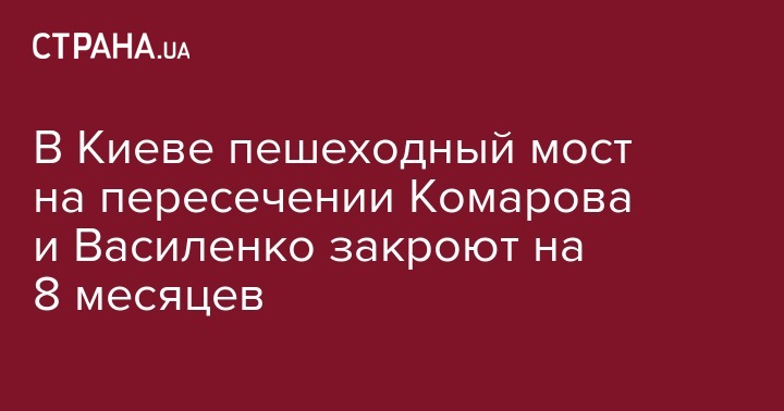 В Киеве временно перекроют пешеходный мост на пересечении проспекта Комарова и улицы Василенко. Он будет закрыт для проведения ремонтных работ со вторника, 5 ноября. Об этом сообщает пресс-служба КГГА.