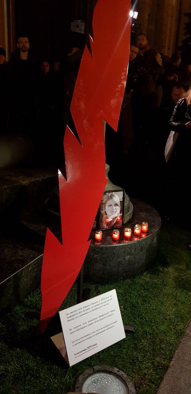Также под Офисом президента установили "красную линию" в честь памяти Кати Гандзюк.