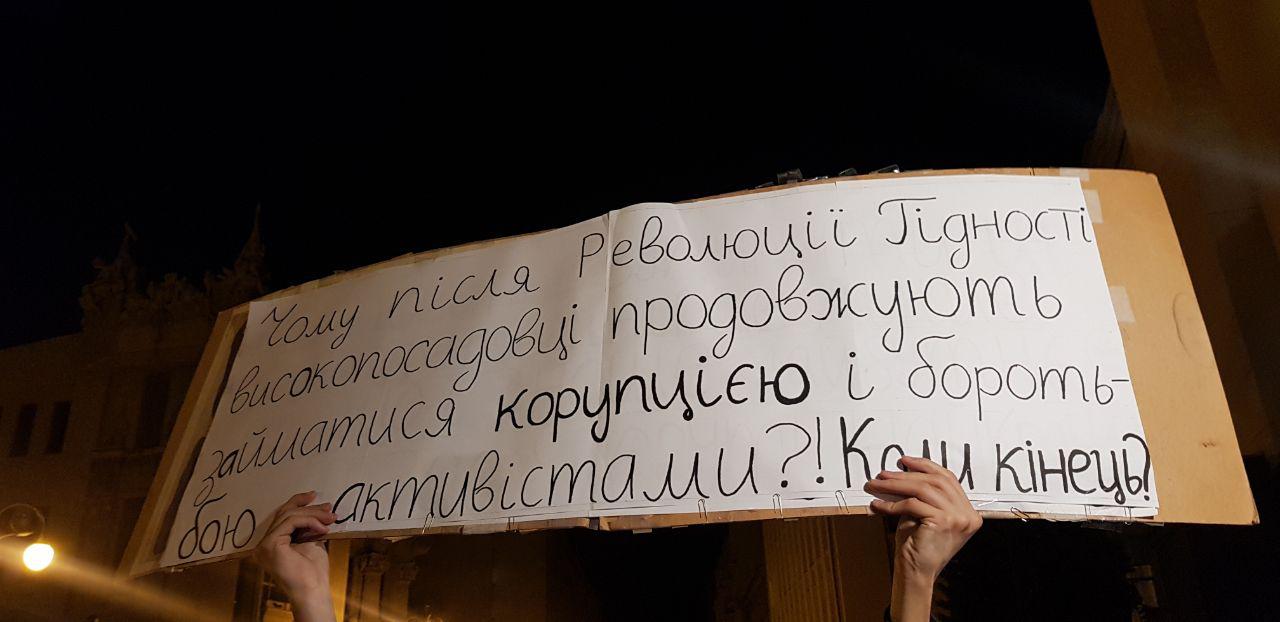 На митинге выступил отец Кати Гандзюк, отметив, что это был тяжелый год без дочери. Как он отметил, виновные в ее убийстве получили обвинительный приговоры, который приравнивается к воровству, в то время как организаторы и заказчики остаются на свободе.