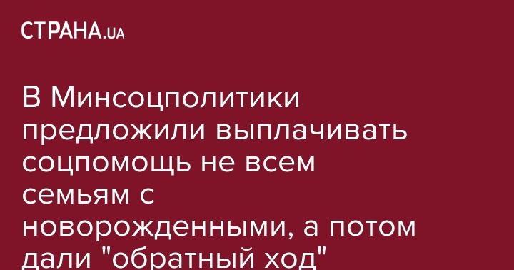 "Одним из предложений было введение адресной программы при рождении, которая выплачивается только тем семьям, чей среднемесячный доход на человека не превышает 15% от размера выплат (фактически это около 6 тыс. грн - поскольку помощь при рождении ребенка составляет около 41 тыс. грн). Соответствующее предложение было внесено в связи с тем, что сейчас помощь при рождении ребенка выдается всем независимо от размера доходов семьи. Идея была в том, чтобы немного изменить подход и помогать только тем, кто реально нуждается", - написала министр.