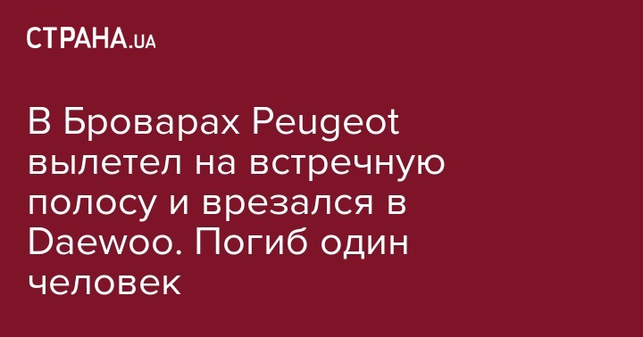 "Бровары, 05:30 , ул.Киевская… На пустой дороге Peugeot вылетает на встречную полосу и бьет Daewoo Lanos. Погибла женщина. Водитель Peugeot в тяжелом состоянии госпитализирован", - говорится в сообщении группы.