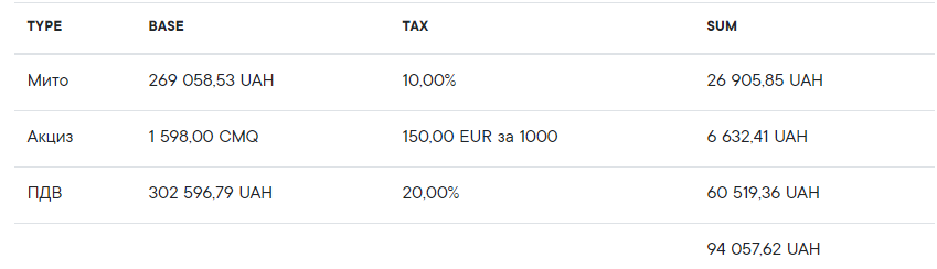 С учетом таможенного сбора (10%), акциза и ПДВ "калькулятор таможенной стоимости авто" насчитал свыше 94 тысяч грн.