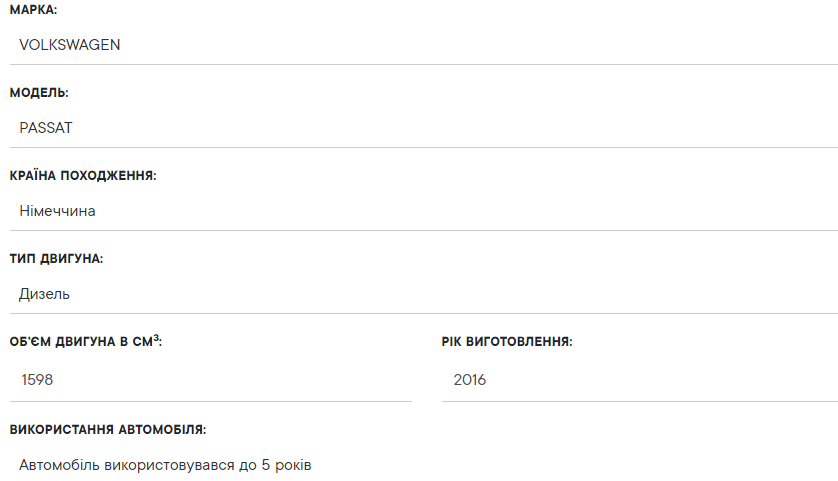 Итак, берем для примера Volkswagen Passat 2016 года выпуска из Германии с дизельным двигателем объемом 1598 куб.см., который использовался менее 5 лет.