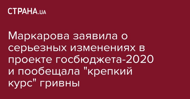 Маркарова заявила о серьезных изменениях в проекте госбюджета-2020 и пообещала "крепкий курс" гривны