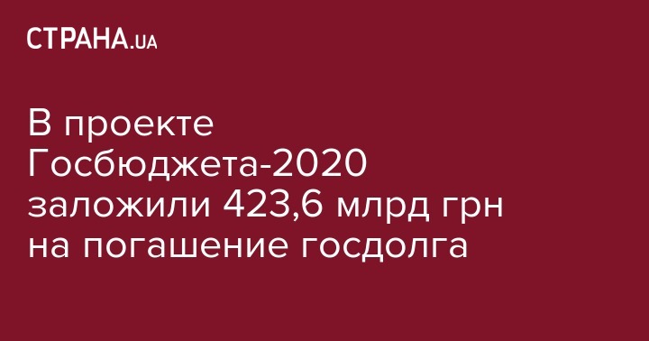Проект Госбюджета Украины предусматривает 282,1 млрд грн на погашение государственного долга в 2020 году и 141,5 млрд на его обслуживание.