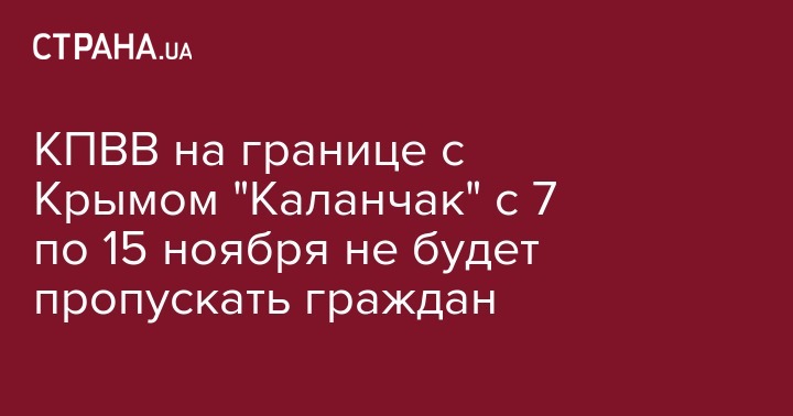 В связи с этим, в период с 7 по 15 ноября КПВВ "Каланчак" приостанавливает оформления граждан. При этом контрольные пункты "Чаплинка" и "Чонгар" продолжат работать в штатном режиме.