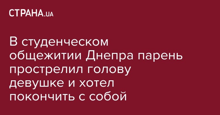 В Днепре 19-летний студент выстрелил из пневматического пистолета в голову 17-летней девушке. После этого парень зашел в свою комнату и выстрелил себе в грудь. Инцидент произошел в общежитии одного из вузов, сообщается на сайте ГУНП Днепропетровской области.
