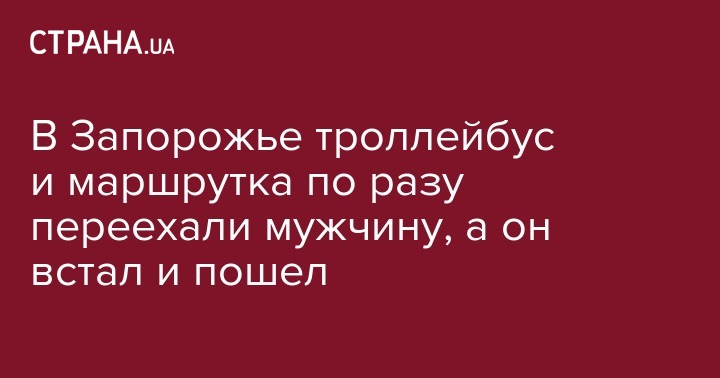 В Запорожье троллейбус и маршрутка по разу переехали мужчину, а он встал и пошел