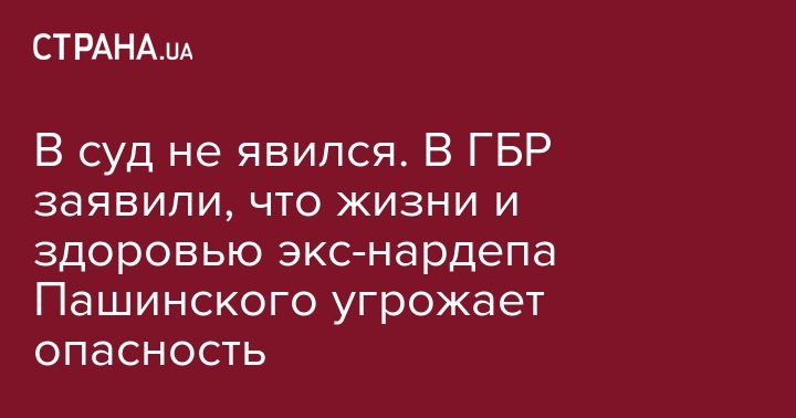 В суд не явился. В ГБР заявили, что жизни и здоровью экс-нардепа Пашинского угрожает опасность