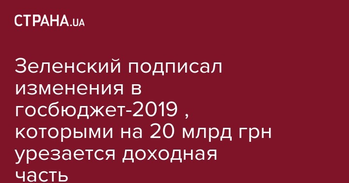 Зеленский подписал изменения в госбюджет-2019 , которыми на 20 млрд грн урезается доходная часть