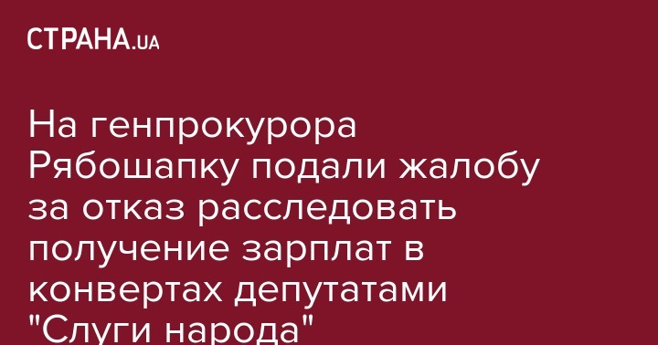 На генпрокурора Рябошапку подали жалобу за отказ расследовать получение зарплат в конвертах депутатами "Слуги народа"