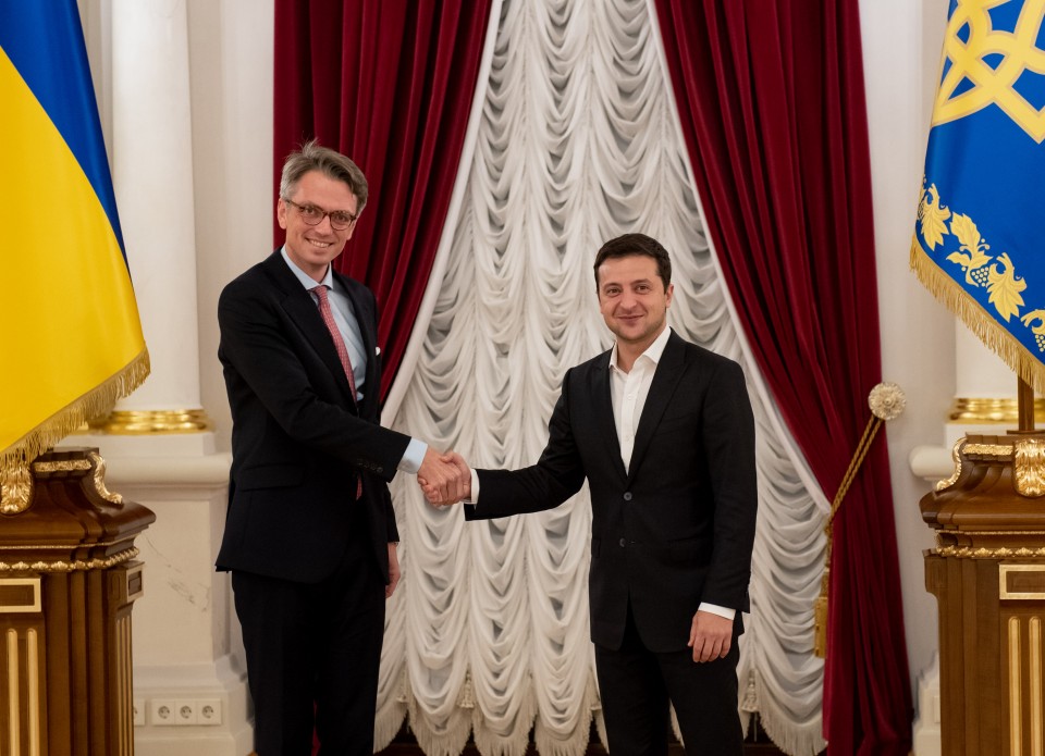"Глава государства поздравил Тобиаса Тиберга с началом его миссии в Украине в должности посла Королевства Швеция. Владимир Зеленский поблагодарил шведского посла за твердую поддержку суверенитета и территориальной целостности нашего государства и подчеркнул важность сохранения положительной динамики, достигнутой в двусторонней торговле", - говорится в сообщении, на официальном сайте Офиса президента Украины в четверг вечером.