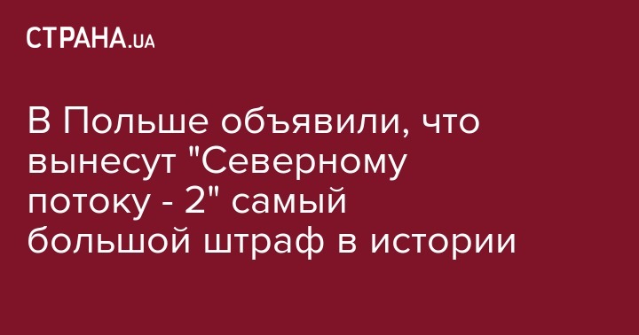 В Польше объявили, что вынесут "Северному потоку - 2" самый большой штраф в истории