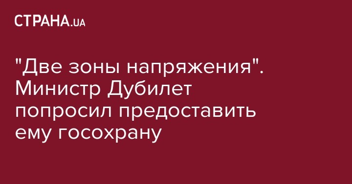 "Две зоны напряжения". Министр Дубилет попросил предоставить ему госохрану