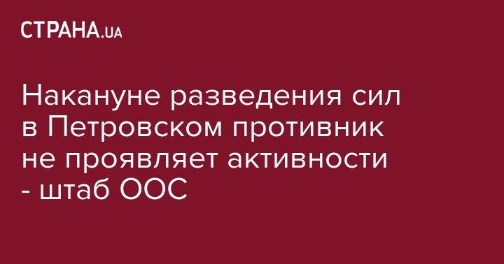 С начала суток террористы самопровозглашенных "ЛДНР" не вели обстрелов по позициям бойцов ВСУ. Об этом сообщает пресс-служба штаба ООС. Как известно, сегодня запланировано разведение сил и войск в Петровском.