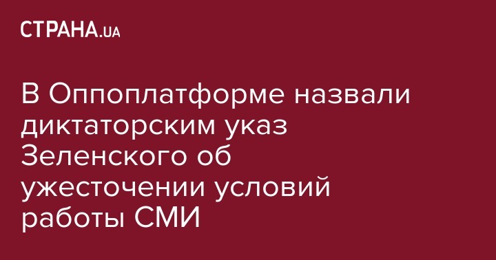 В Оппозиционной платформе "За жизнь" назвали диктаторским указ Владимира Зеленского об ужесточении условий работы СМИ. И сообщили, что это угрожает свободе слова и демократии в Украине. Об этом говорится в заявлении партии на сайте.
