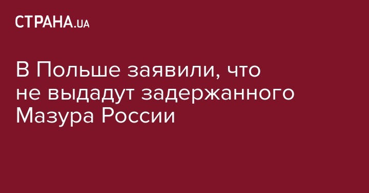 Вице-спикер пояснила, что польские правоохранители задержали Мазура исключительно по "техническим" причинам, поскольку Польша должна придерживаться стандартной процедуры рассмотрения ордера Интерпола.