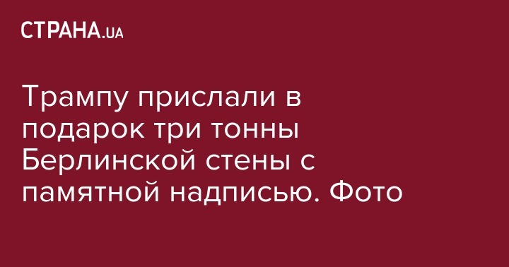 Трампу прислали в подарок три тонны Берлинской стены с памятной надписью. Фото