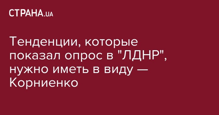 Александр Корниенко, новый глава партии Слуга народа, заявил, что пока непонятно, чем обоснована информация о том что большинство жителей ОРДЛО хотят, чтобы "Л/ДНР" вошли в состав России. Но, по словам Корниенко, показанные там тенденции нужно иметь в виду при наработке решений. Об этом сообщает "Интерфакс-Украина".