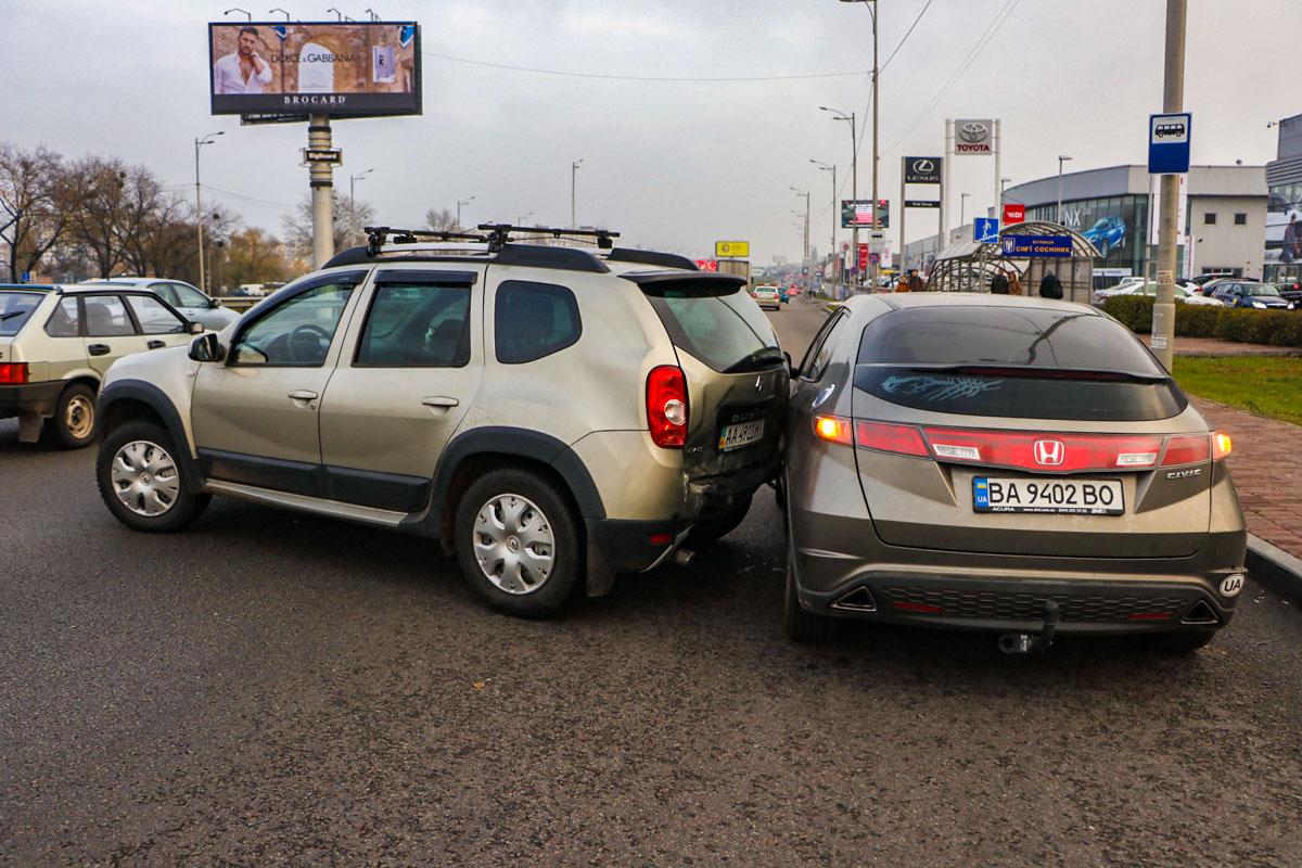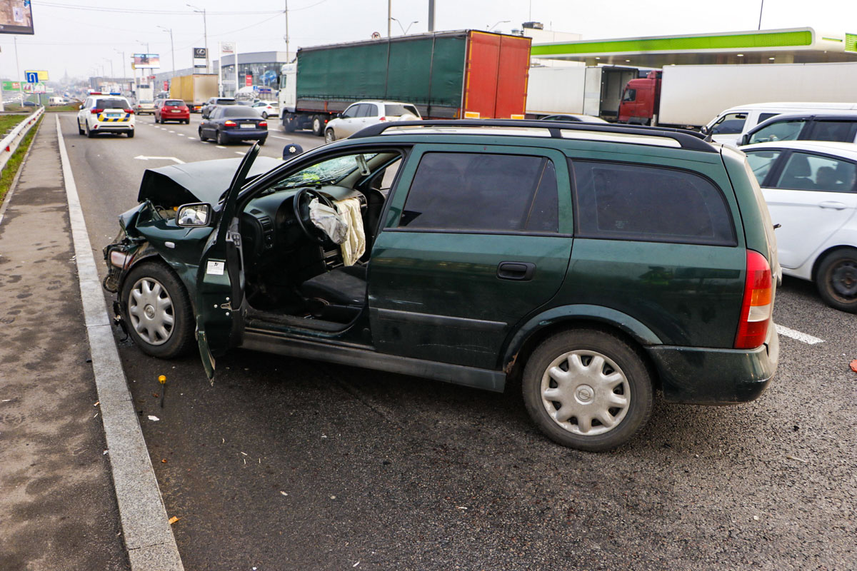 По словам водителя Renault, он ехал по кольцевой в сторону Жулянского моста, в этот момент в его машину врезался Opel. От удара машину Renault понесло по дороге в сторону обочины и он столкнулся с Honda.
